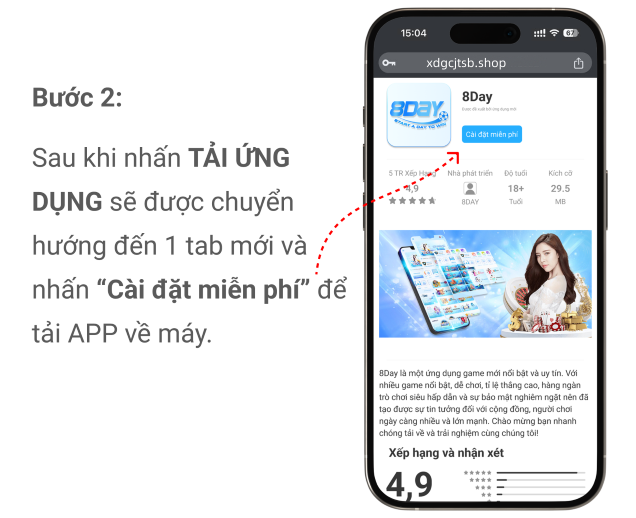 Buóc 4: Hoàn tất cài đặt ứng dụng 8day và đăng nhập vào App để tận hướng trò chơi của bạn