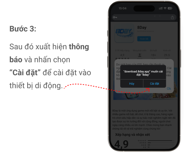 Buóc 3:Sau đó xuất hiện thông báo và nhấn chọn “Cài đặt” để cài đặt vào thiết bị di động